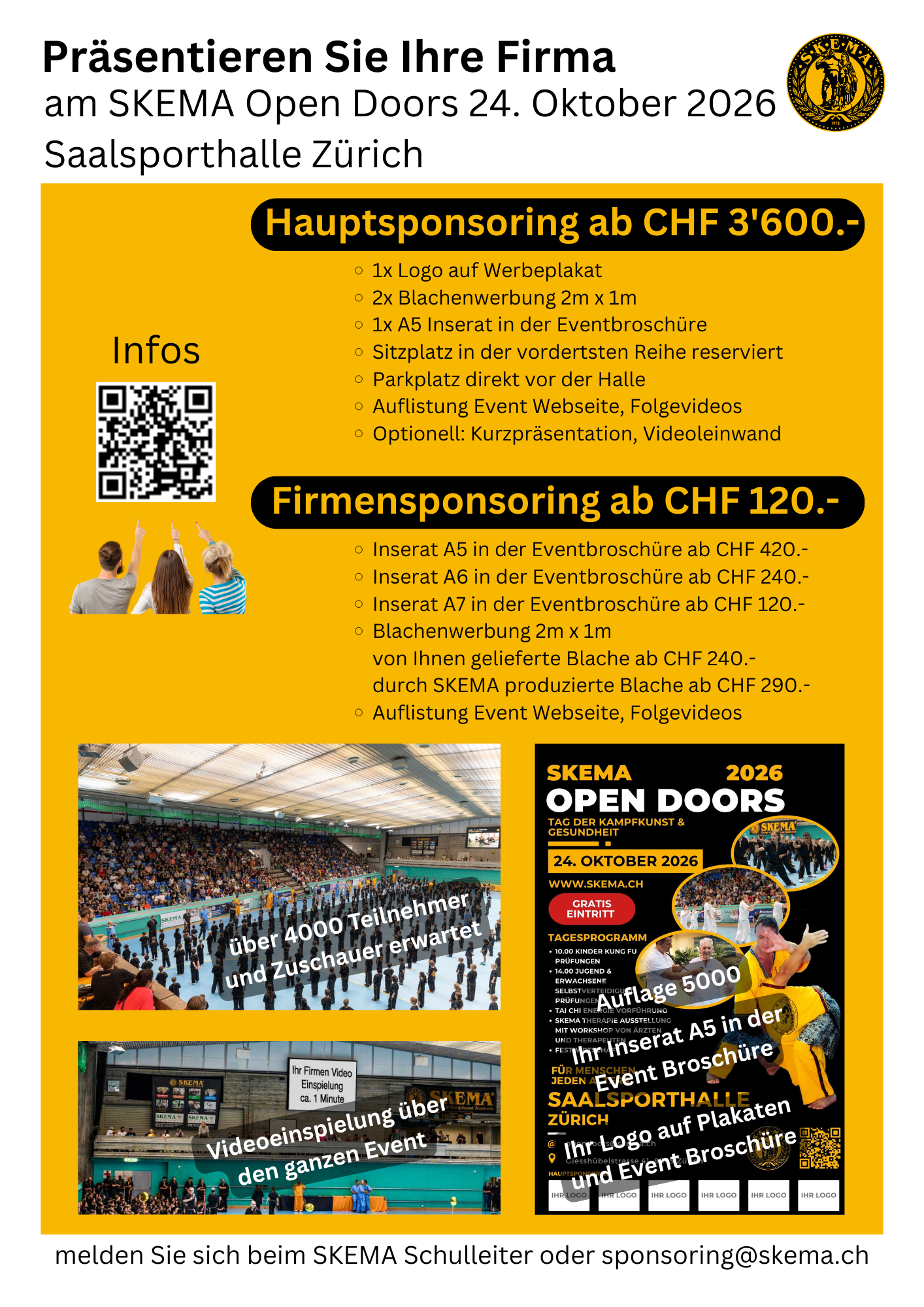 Mit grosser Freude laden wir Sie ein, Sponsor unseres einzigartigen Kampfkunst-Events SKEMA Open Doors 2026 zu werden.